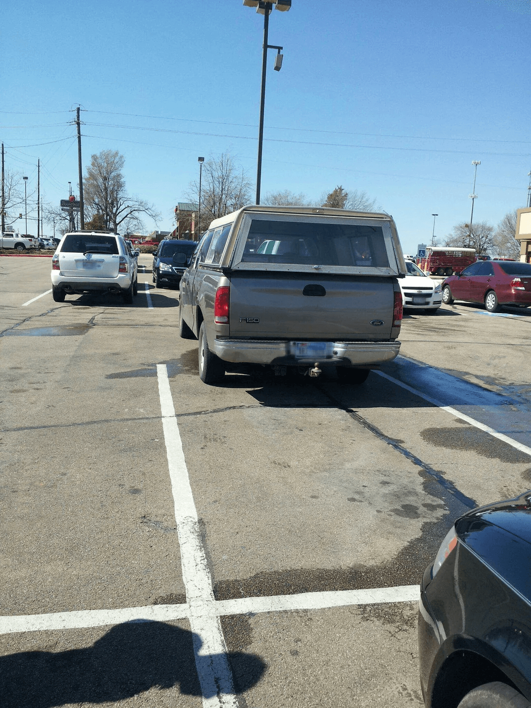 Auto zaparkované tak, že blokuje celé parkovisko, ukazuje, že niektorí vodiči o parkovacích pruhoch zrejme nikdy nepočuli.