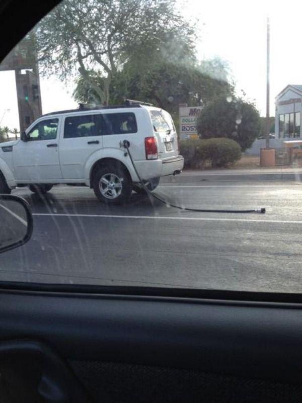 Hadica z benzínovej pumpy stále pripojená k autu dokazuje, že niektoré chyby sa opakujú zarážajúco často.