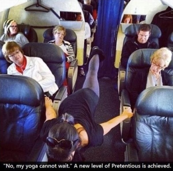 Jóga v lietadle ukazuje, že niektorí ľudia ignorujú všetky pravidlá spoločenského správania.