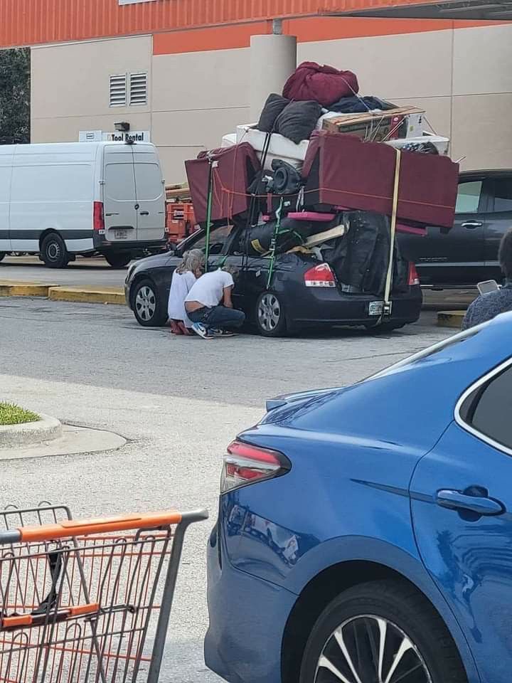 Auto naložené do bodu, kde je využitý každý centimeter priestoru a ignorovaný každý zákon fyziky aj cestnej premávky.