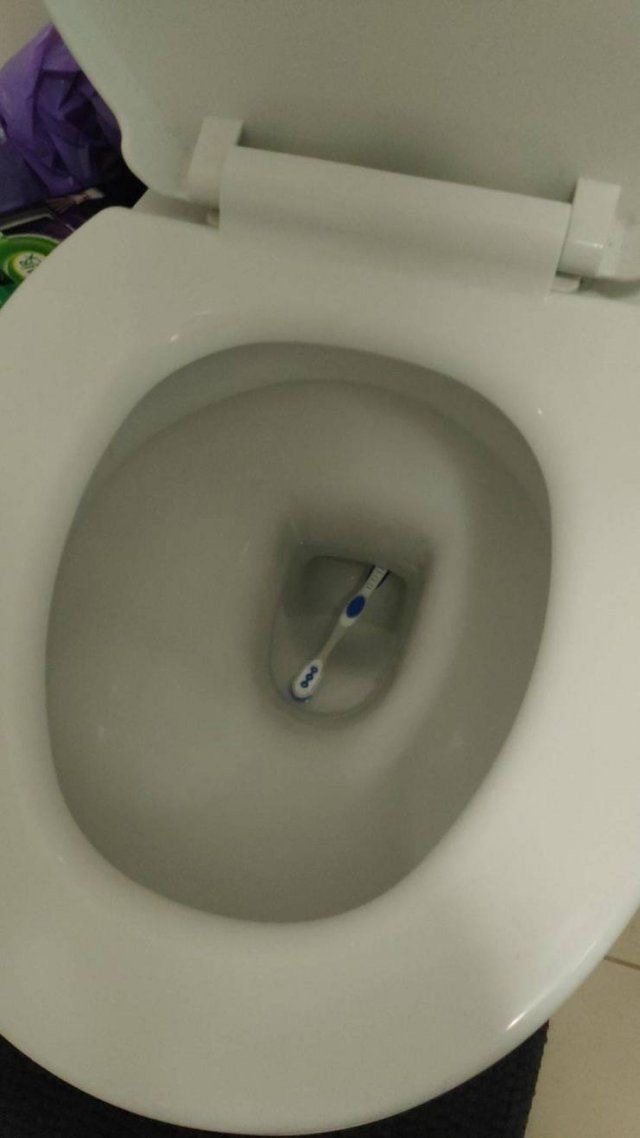 Zubná kefka pristála tam, kam sa už nikdy nemala dostať, čo naznačuje zásah nahnevaného súrodenca.