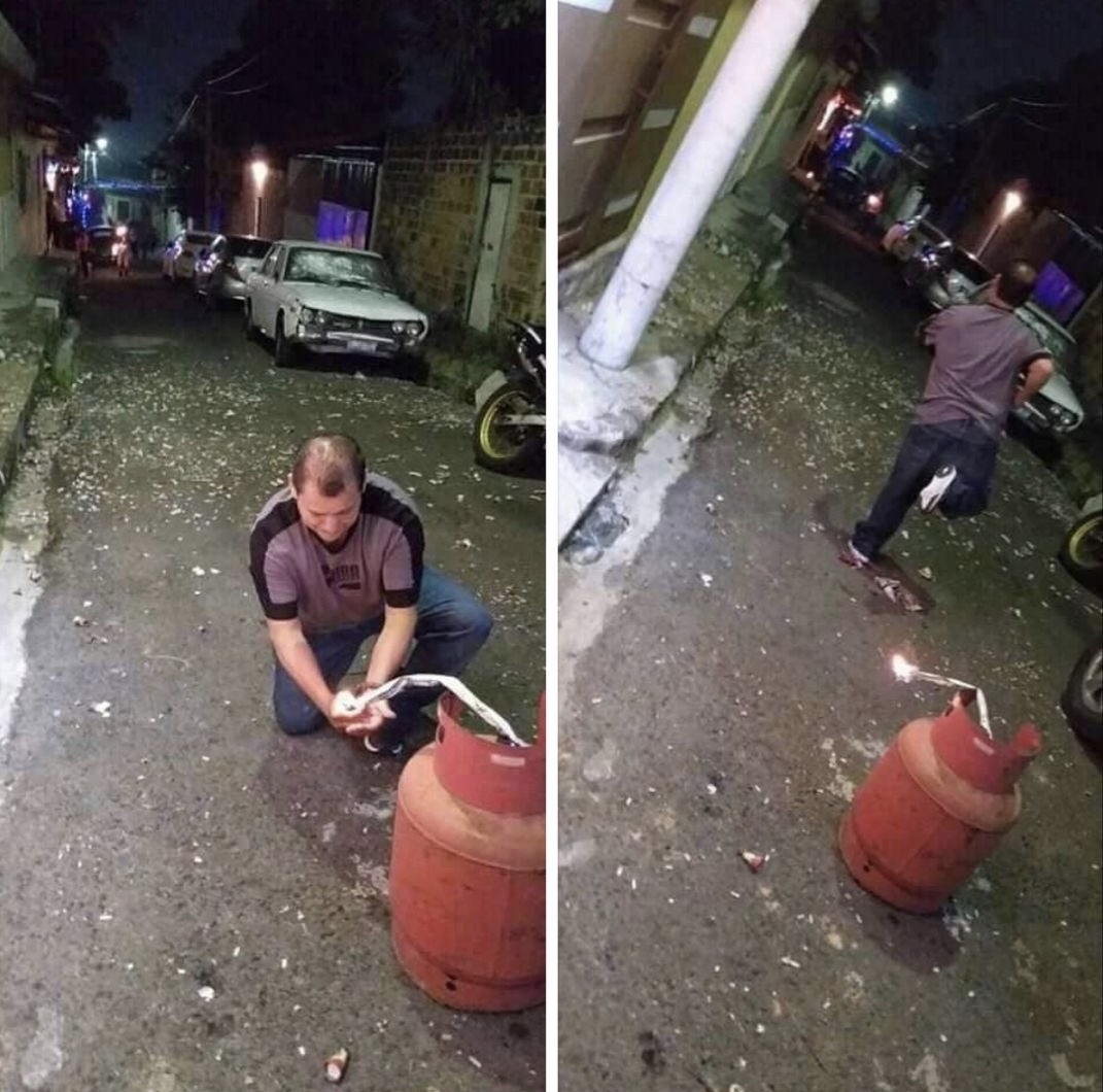 Muž s vedierkom plným sódy sa tváril, že ide o úplne bežnú vec, hoci realita hovorila presný opak.