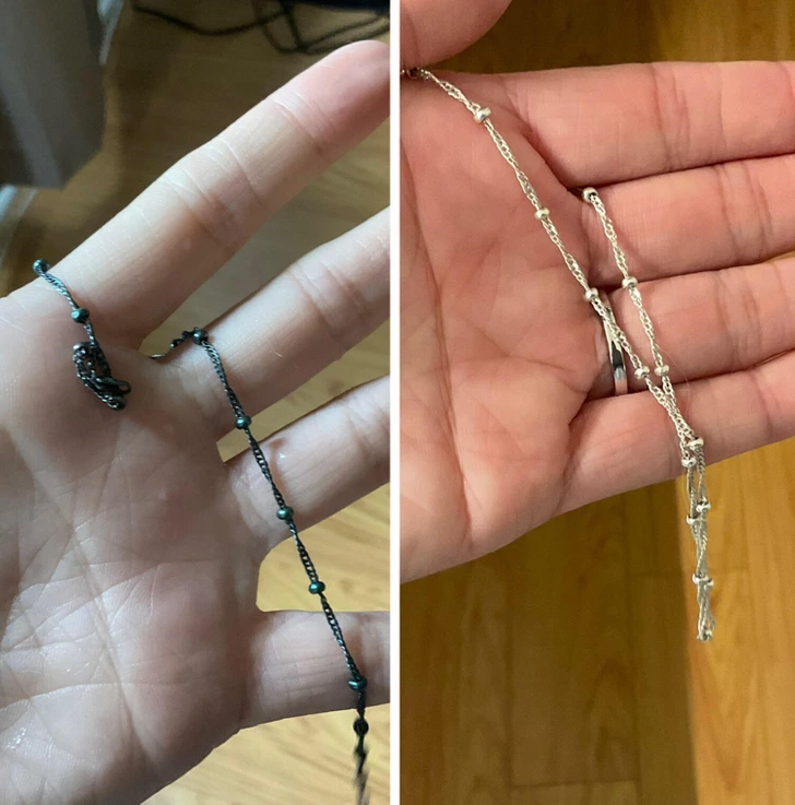 Po namočení strieborného náramku do čističa šperkov získal lesk.