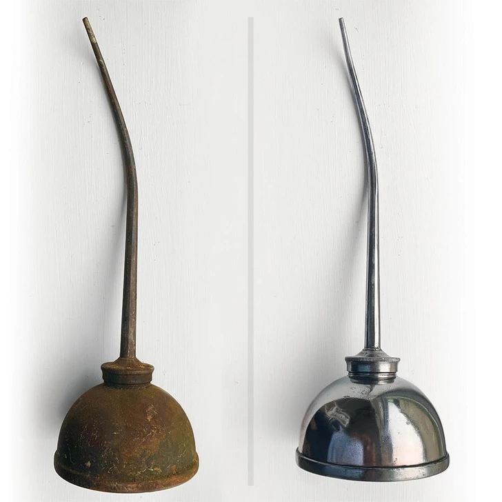 Starožitná olejnička z blšieho trhu po očistení dostane nové využitie v garáži.