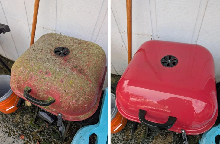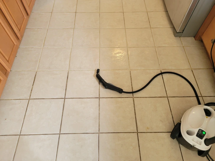 Majiteľ tvrdí, že jeho nový parný čistič robí zázraky, a pohľad na výsledok mu dáva za pravdu.