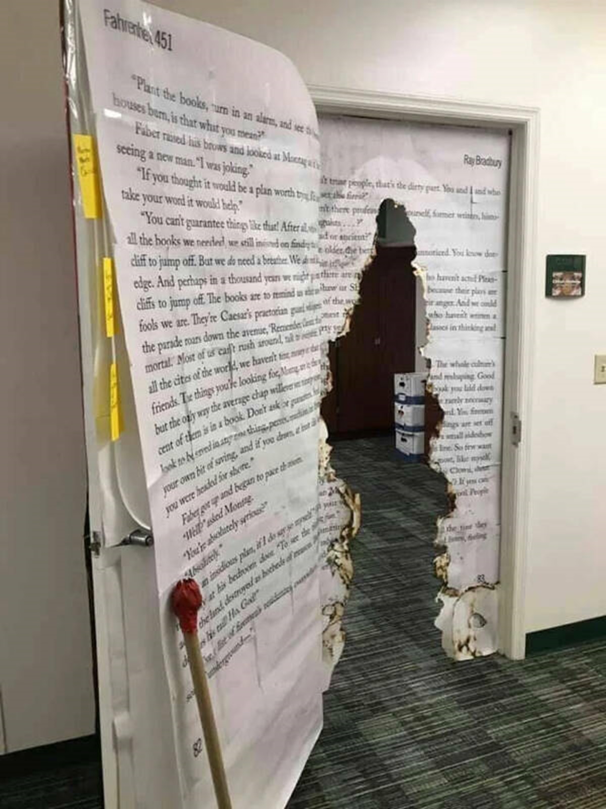 Dvere na vysokej škole inšpirované románom „Fahrenheit 451“ sú originálnou poctou literatúre.