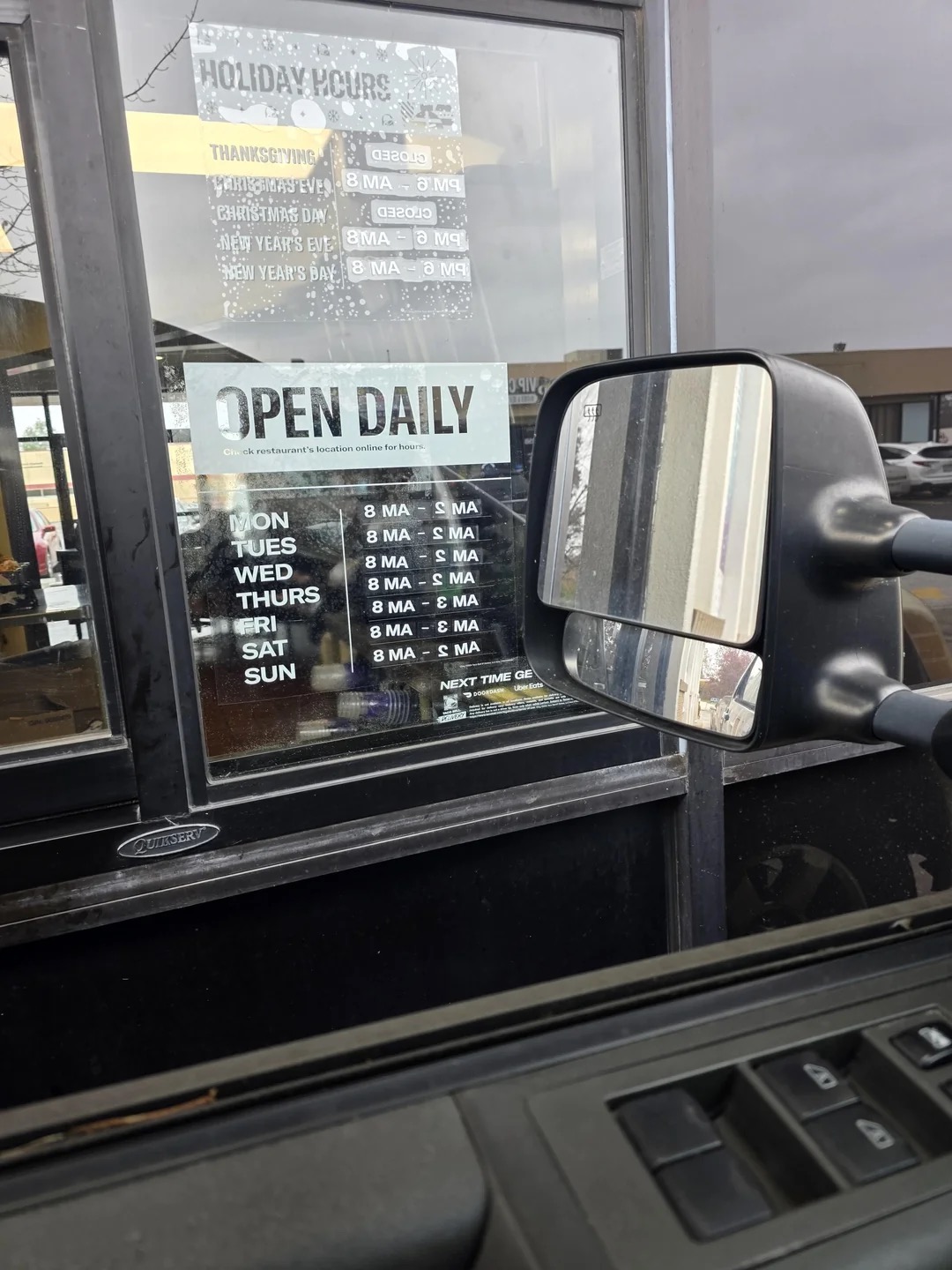 Oznam o pracovnom čase je otočený tak, že ho možno prečítať iba zvnútra, čo úplne popiera jeho účel.