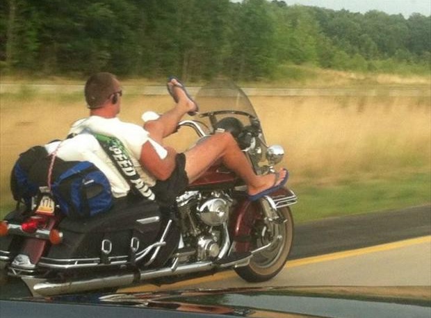 Riadenie motorky takýmto spôsobom a v takomto oblečení je naozaj hazard so životom
