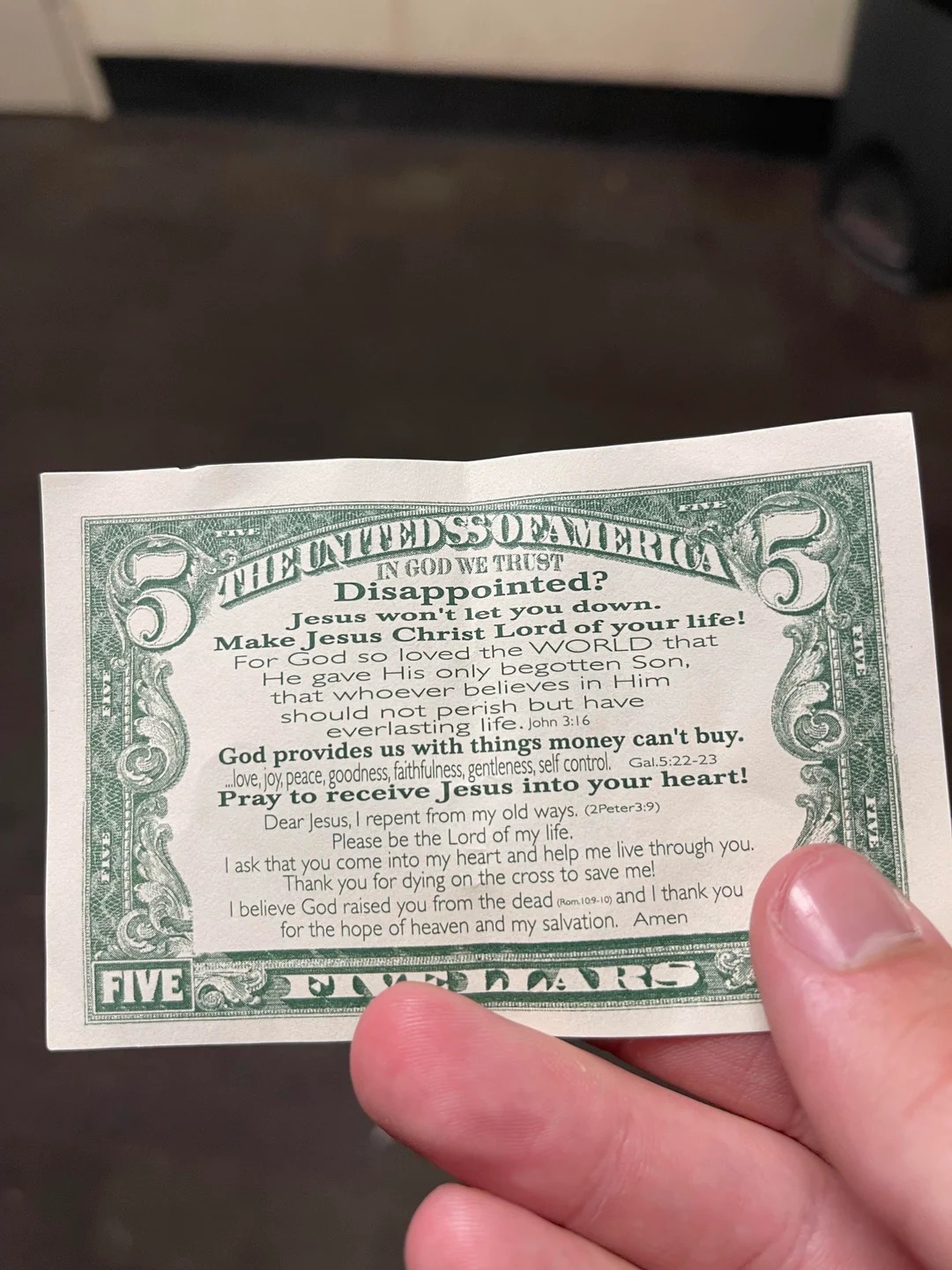 Komorník s hodinovou sadzbou 3,85 USD dostal ako sprepitné 5 dolárovú bankovku, ktorá vlastne bankovkou vôbec nebola