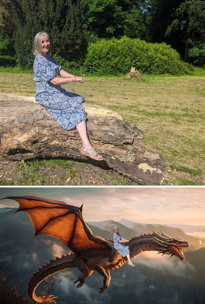 Môžete ma spraviť tak, aby som vyzerala, akoby som jazdila na drakovi?