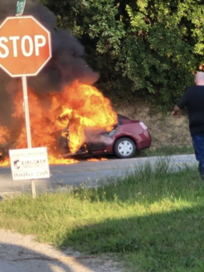 Počas cesty na vysokú školu začalo horieť auto so všetkým, čo mal mladý študent vo vnútri.