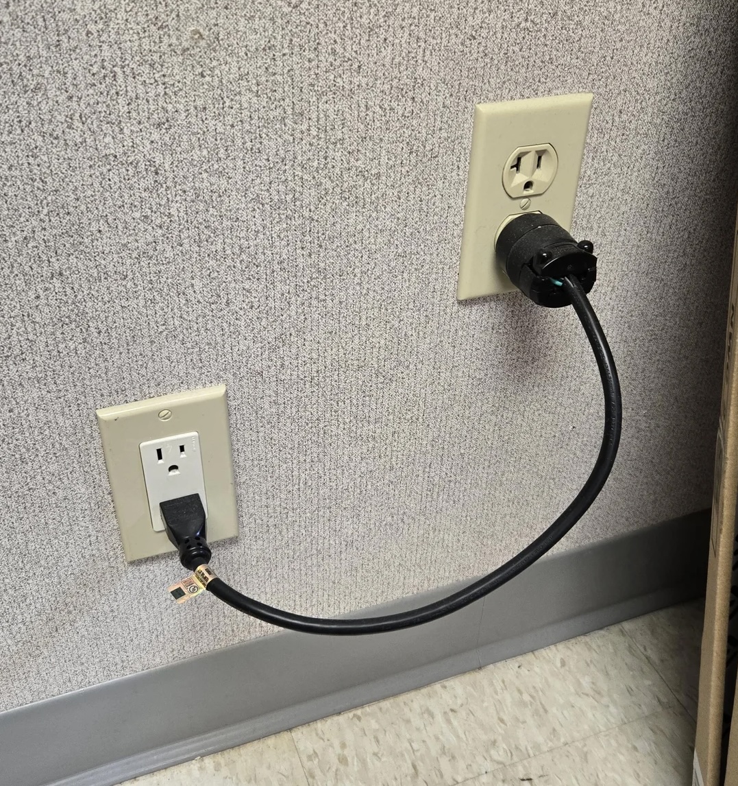 Nevieme o čo tu ide, ale táto elektroinštalácia určite nebude s kostolným poriadkom.