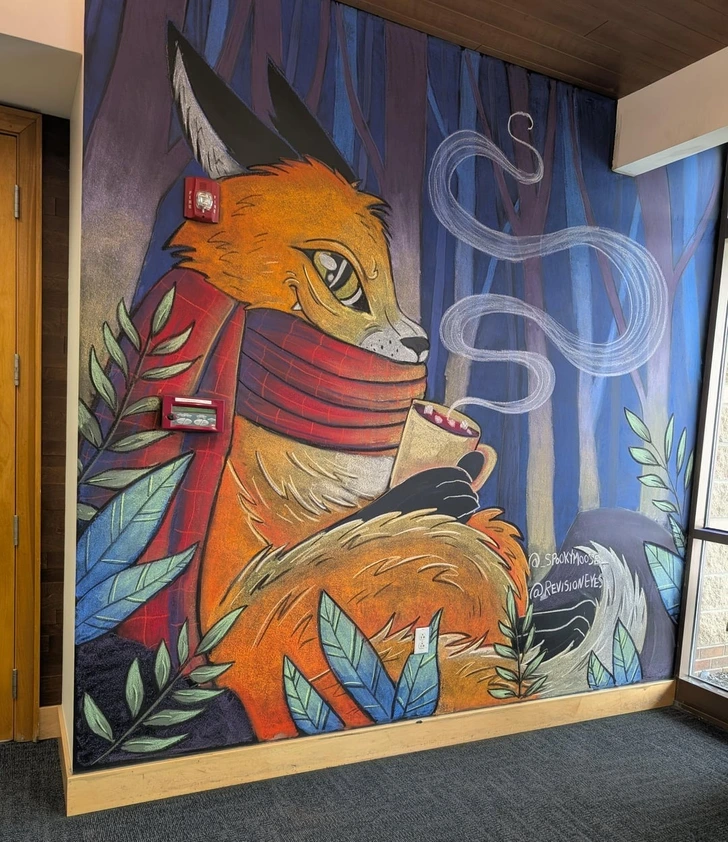 Nakreslila som celú kriedovú nástennú maľbu pre miestny obchod.