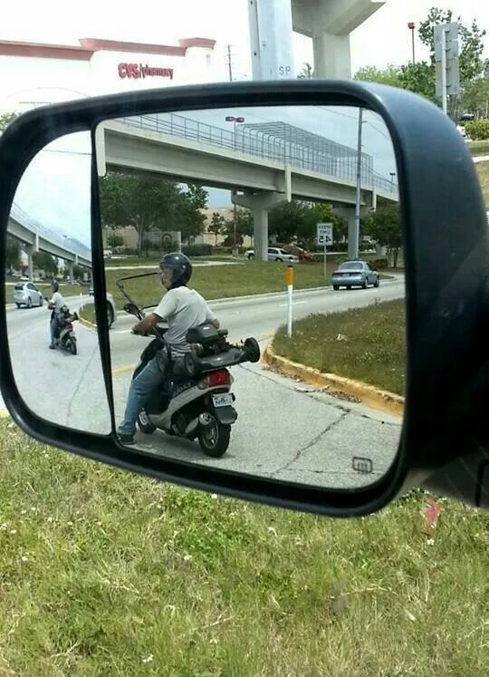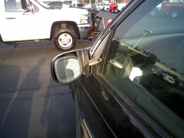 Niekto použil malé ručné zrkadlo ako núdzové riešenie v aute, pravdepodobne požičané z kúpelne.