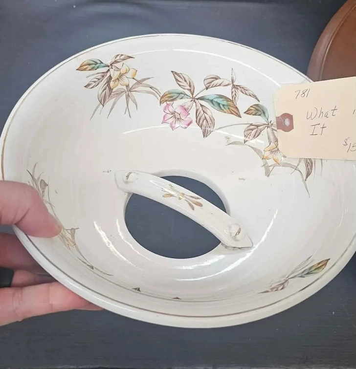 Miska s otvorom a rúčkou vo vnútri je v skutočnosti viečko starej nádoby na odpadovú vodu z komory.
