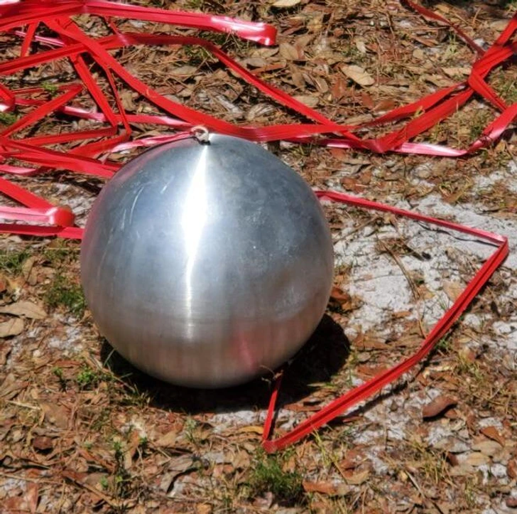 Okrúhla kovová guľa, ktorá dopadla na pastvinu s padákom, slúži na kalibráciu radarových systémov a je vyrobená z dutého hliníka.