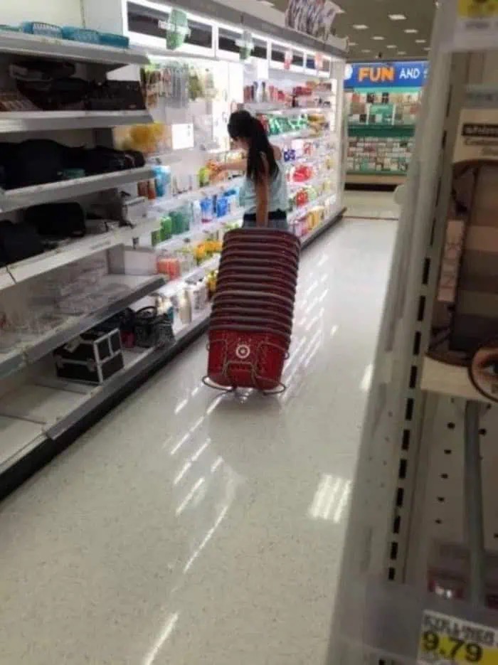 Vziať si všetky nákupné košíky naraz sa zdalo ako skvelý nápad, kým nebolo treba prejsť prvých pár metrov.