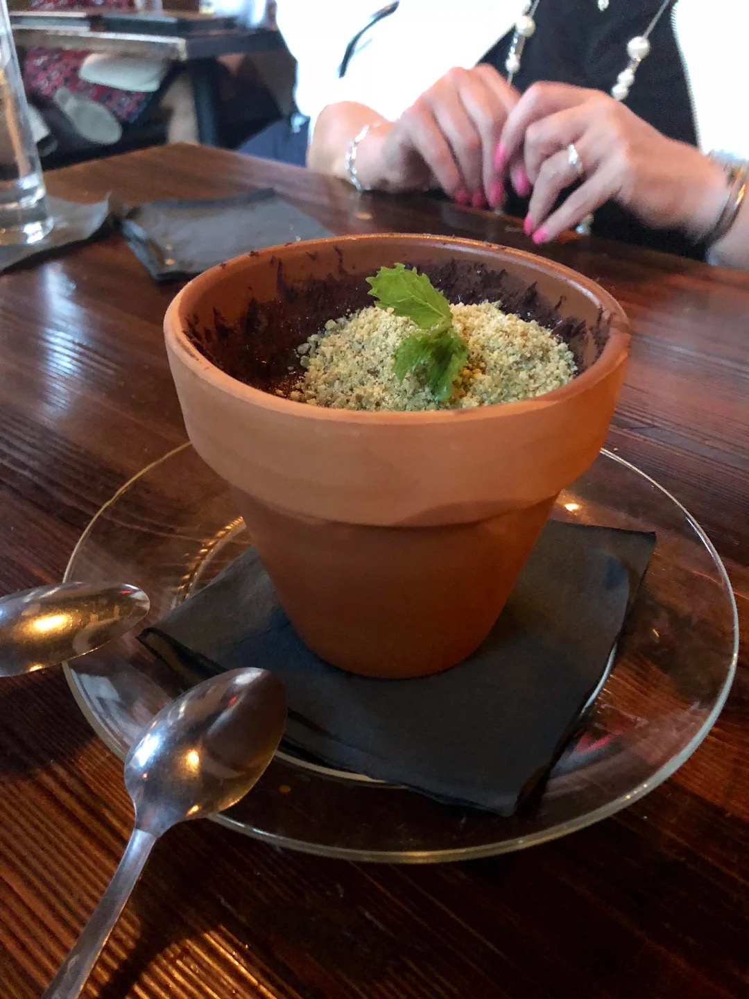 Vlhký puding servírovaný v terakote znie presne tak nepríjemne, ako aj vyzerá, najmä keď príbor škriabe o povrch.