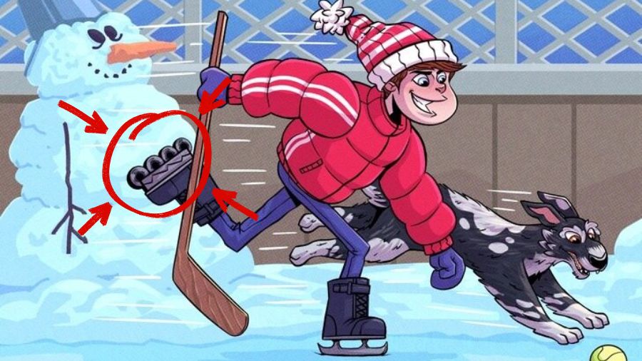 Chyba na obrázku spočíva v tom, že chlapec korčuľuje na ľade a jedna jeho korčuľa nie je určená na ľad ale na bežné letné korčuľovanie. Na prvý pohľad si to väčšina ľudí nevšimne, pretože pozornosť priťahuje hokejka a samotný pohyb.