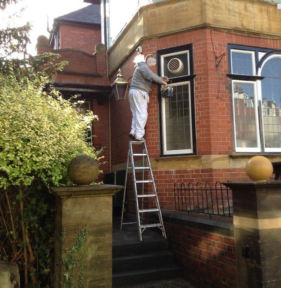 Starší muž pracoval na rebríku tak nebezpečne, že ten takmer spadol.