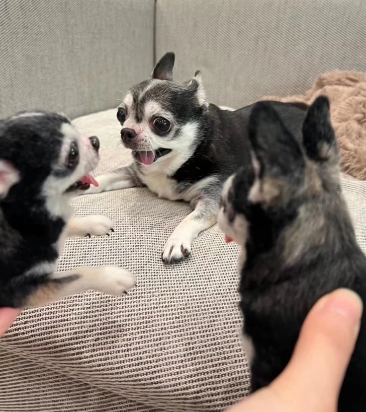 Pozrite sa na reakciu môjho psa, keď uvidel svoje kópie, ktoré som vyrobila z plstenej vlny.