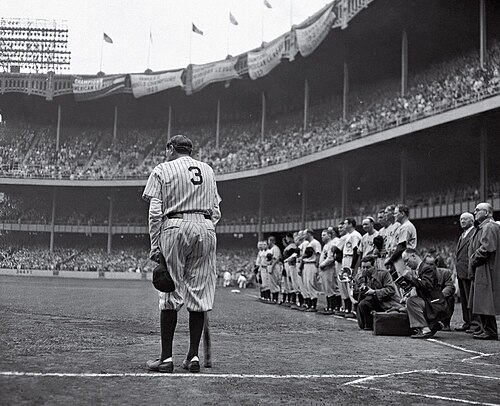 Záber z roku 1948 ukazuje Babe Ruth, ktorý sa lúči na štadióne Yankee krátko pred svojou smrťou.