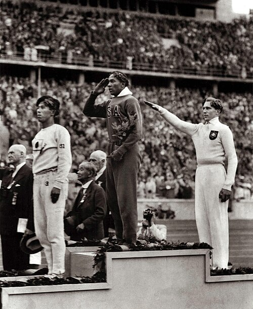 Snímka Jesse Owens z olympijských hier 1936 ukazuje jeho triumf a symbolický význam v čase nacistického Nemecka.