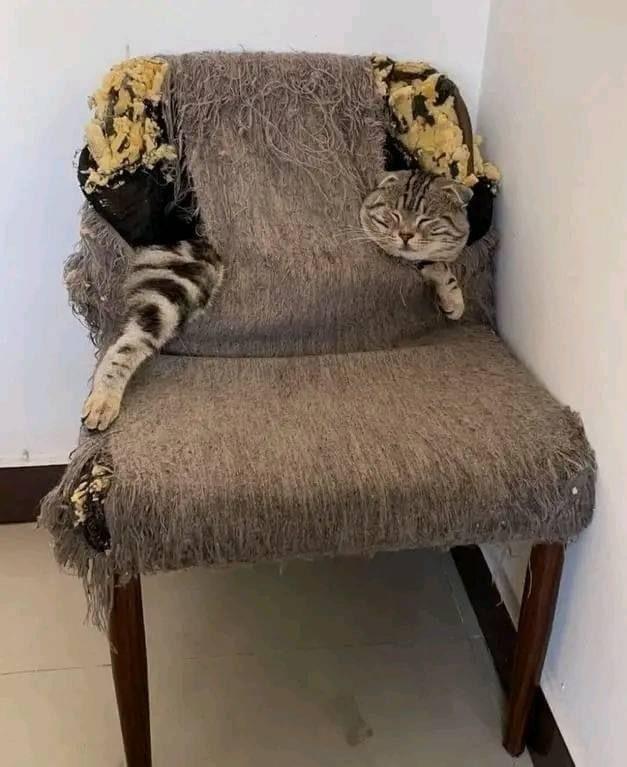 Mačka splýva s nábytkom tak dokonale, že ju takmer nemožno rozpoznať.