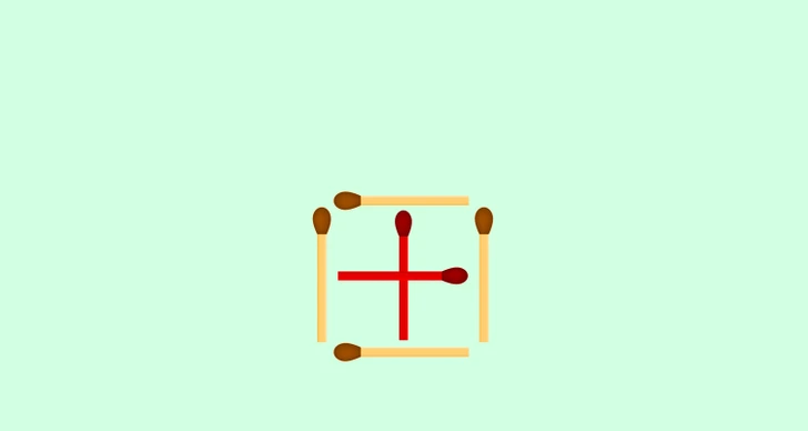 Na druhom obrázku nájdete správne rozloženie zápaliek. Presunutím dvoch konkrétnych kusov sa podarí vytvoriť celkovo 5 štvorcov. 4 budú rovnaké a jeden ostáva pôvodný veľký.