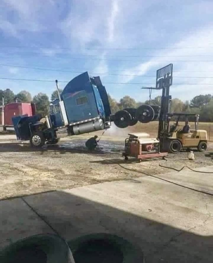 Človek sa nachádza pod nákladiakom v situácii, ktorá rozhodne nepatrí medzi bezpečné.