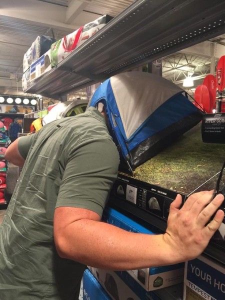 Niekto uviazol hlavou v miniatúrnom stane a situácia pôsobí skôr komicky než prakticky.