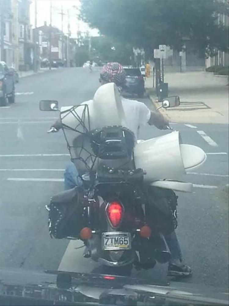 Niekto sa rozhodol prenášať toaletu tak, akoby išlo o úplne bežnú vec.