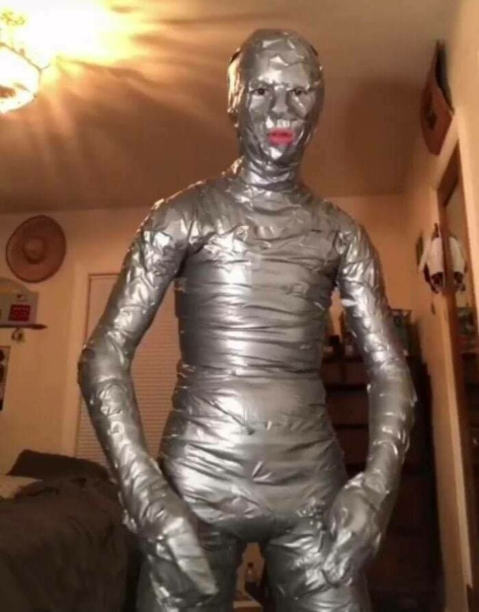 Kostým vyrobený z lepiacej pásky môže byť bolestivým prekvapením najmä pre chlpatých ľudí.