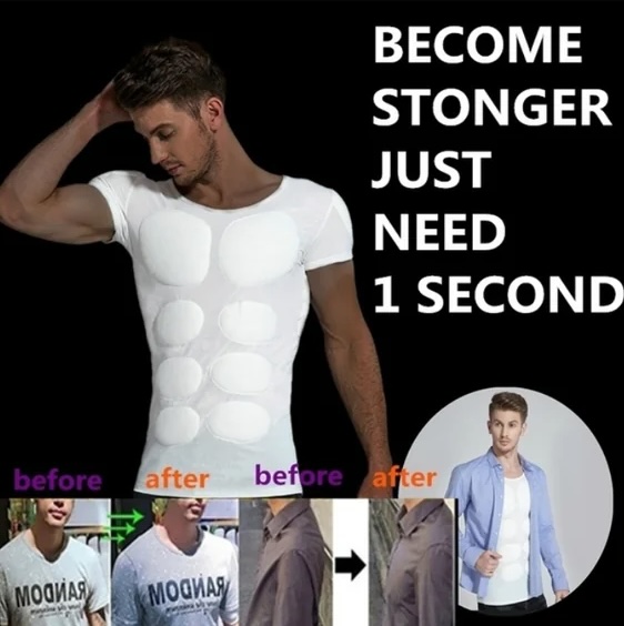 Pánske oblečenie sľubuje okamžitý efekt „vypracovaného tela“ bez námahy, čo pôsobí skôr komicky než presvedčivo.