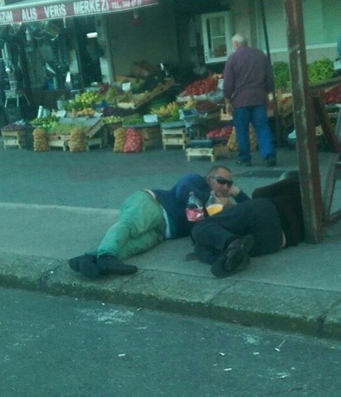Oddych na chodníku. A to priamo na ulici