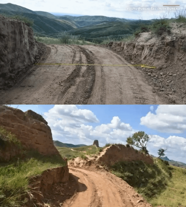 In the Shanxi region of China, two people drilled a hole in the Great Wall of China “to make a shortcut”.